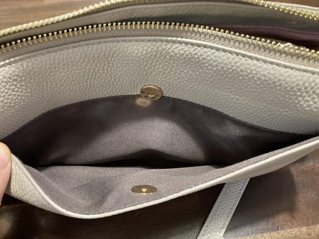 私が購入したグレージュは内側がピンクなので、普段洋服では使うのが難しく感じるピンク色を密かに取り入れることができ、自己満足ではありますがいい気分になれます。