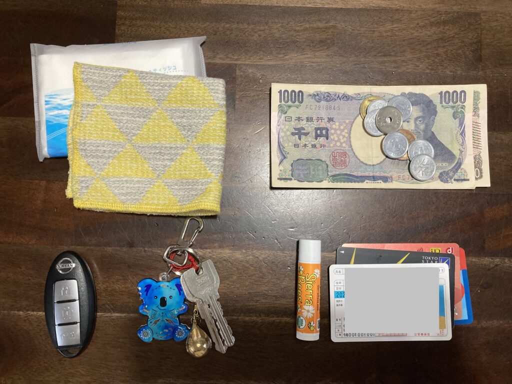 また、保育園の帰りはスーパーに行くこともあるのでスーパーのポイントカードやクレジットカード、時々使う銀行のキャッシュカード、念のための現金も持ち歩いています。