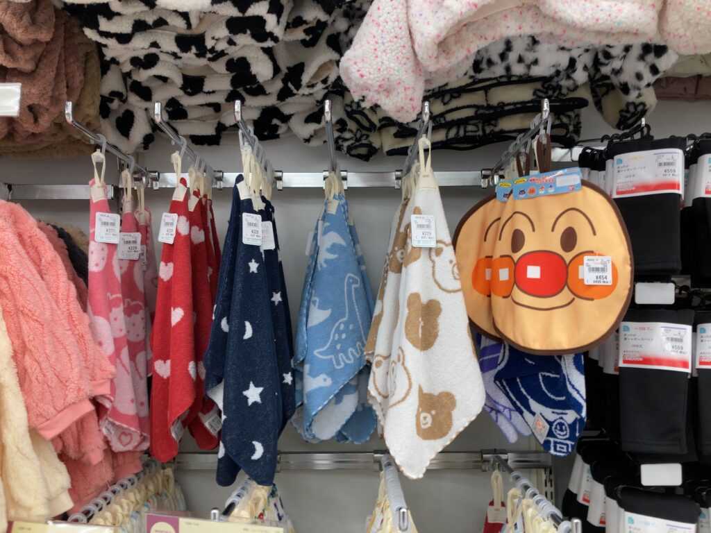 しまむらは下の画像のようにキャラクターもののタオルが豊富に取り揃えられており(アンパンマンもありました)、価格も3枚539円とお手頃でした。