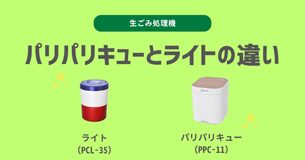 生ごみの臭いや体積を軽減してくれる生ごみ処理機ですが、今回はその中でも人気の「パリパリキュー(PCL-11)」と業界最小の「パリパリキューライト(PCL-35)」徹底比較してみました!