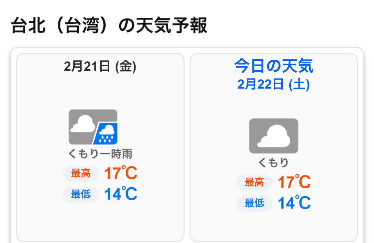 ちなみにこの日(2月22日)の天気はこんな感じ。