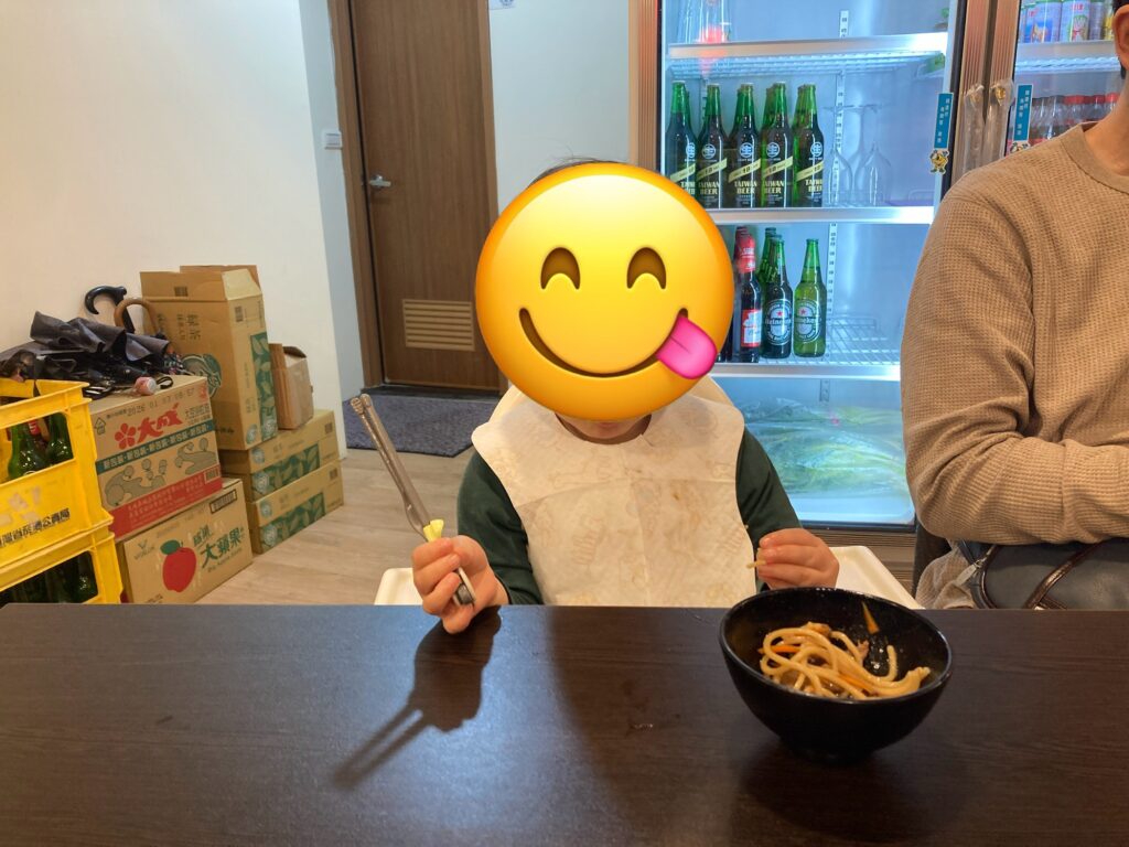 マイお箸で麺を食べる次男。お店の人がとても親切で子供に対しても優しく接してくださり嬉しかったです。