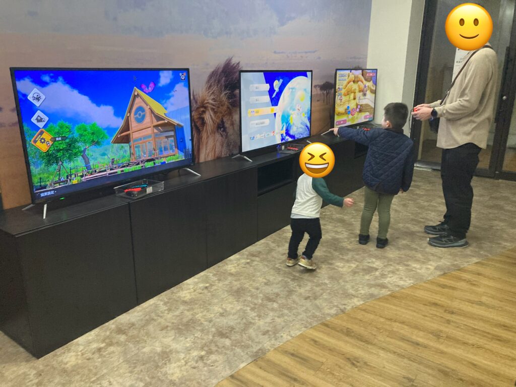 そしてホテルに帰ってゲームコーナーではしゃぎます。長男は初めて触るNintendo Switchに大興奮。