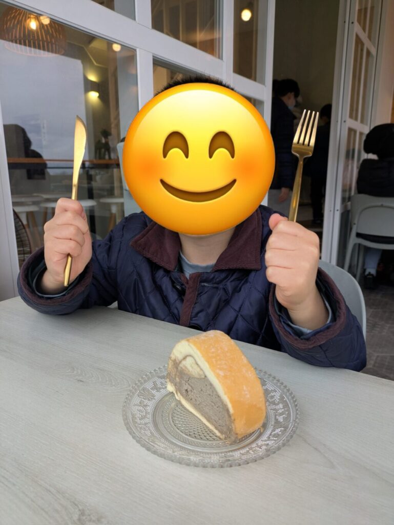 長男はロールケーキを食すが、ちょっと大人の味だったらしく期待していたものとは違った模様・・・。