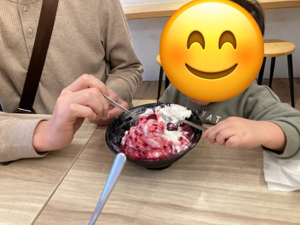 で、美食の町というくらいなので本当はここでお昼ご飯を食べたかったのですが、長男のリクエストでかき氷を食べることに。