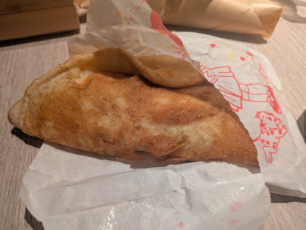 ちなみに下はB級グルメの葱油餅(ツォンヨゥピン)。人気のようで結構長い列に並んで買いました。中に卵が入っていて、ジャンキーながらもパクパク食べれる美味しさでした。