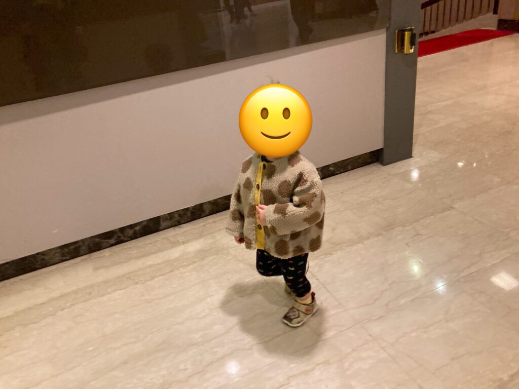 深坑老街(シェンカンラオジエ)を楽しんだあとはホテルに戻り、また子供たちお待ちかねのキッズスペースで遊んでからお風呂に入り床につきました。