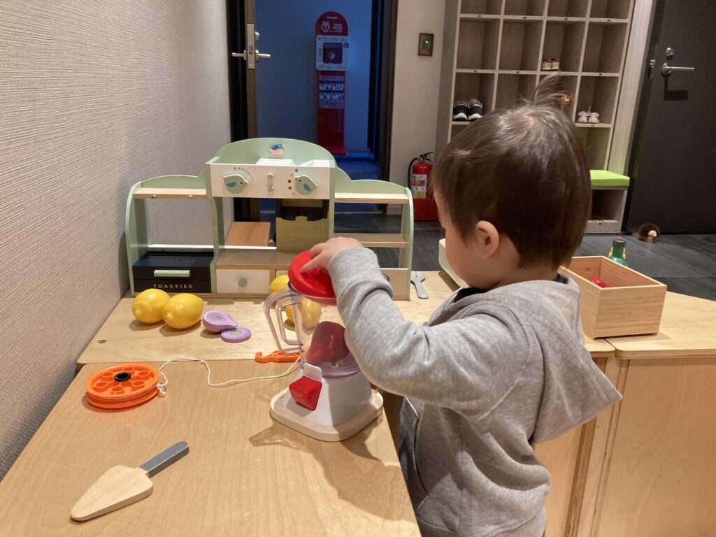 ホテルに戻り、寝る前にまたキッズスペースへ