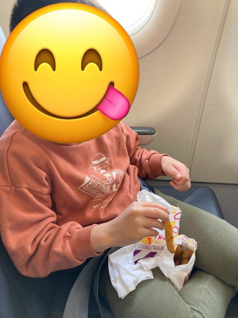 最後までバタバタでなんとか飛行機に搭乗し、お昼ご飯は機内でいただきました。幼児連れなので時間つぶしにもなってちょうど良かったです。