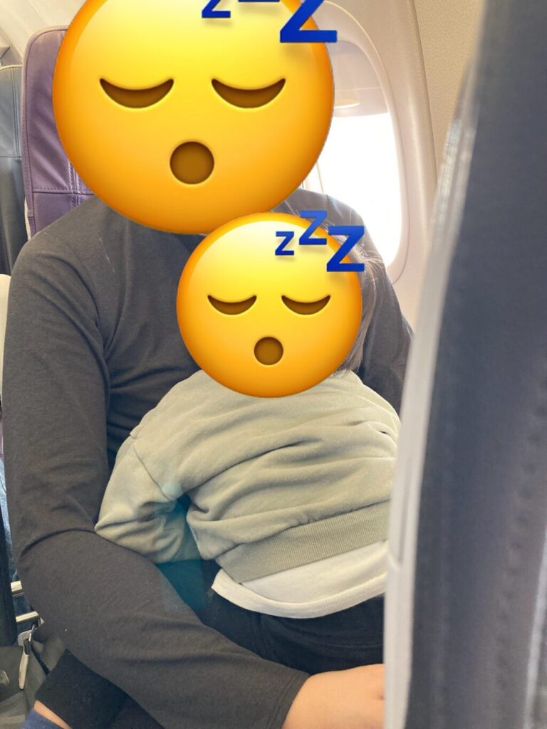 2歳次男はお昼ご飯を食べたらパパのおひざで寝てくれて助かりました。幼児連れにはお昼の便が安心ですね。